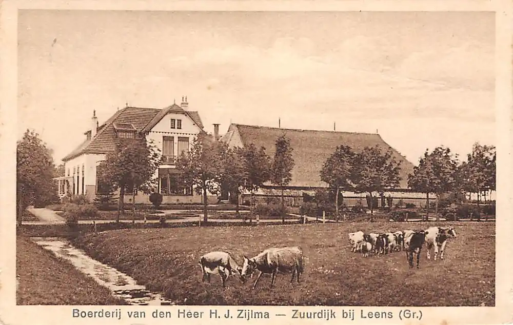 Uitgave F. Ozinga, Boekhandel, Leens (Gr.). Gelopen ansichtkaart met postzegel en stempel 1927.