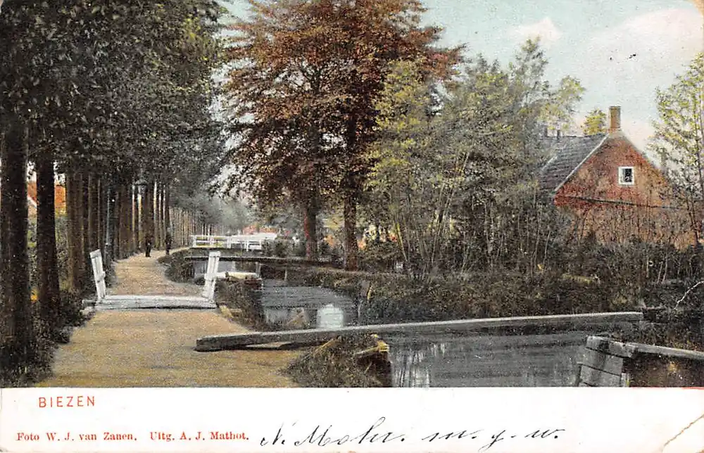 Foto W.J. van zanen. Uitg. A.J. Mathot. Gelopen ansichtkaart met postzegel en stempel begin 1900.