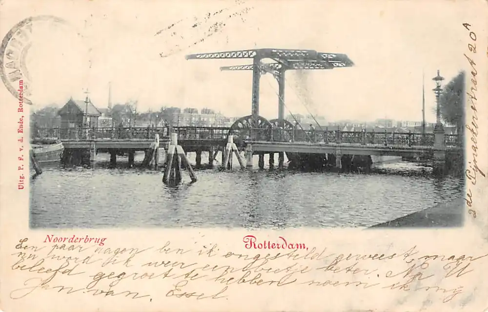 Uitg. P.F. v.d. Ende, Rotterdam. Gelopen ansichtkaart met stempels en bijna geheel verwijderde postzegel.