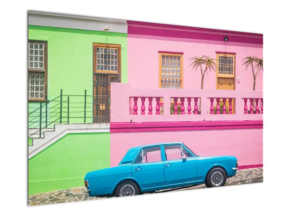 Zwrot pieniędzy Schilderij – Auto voor gekleurde huizen