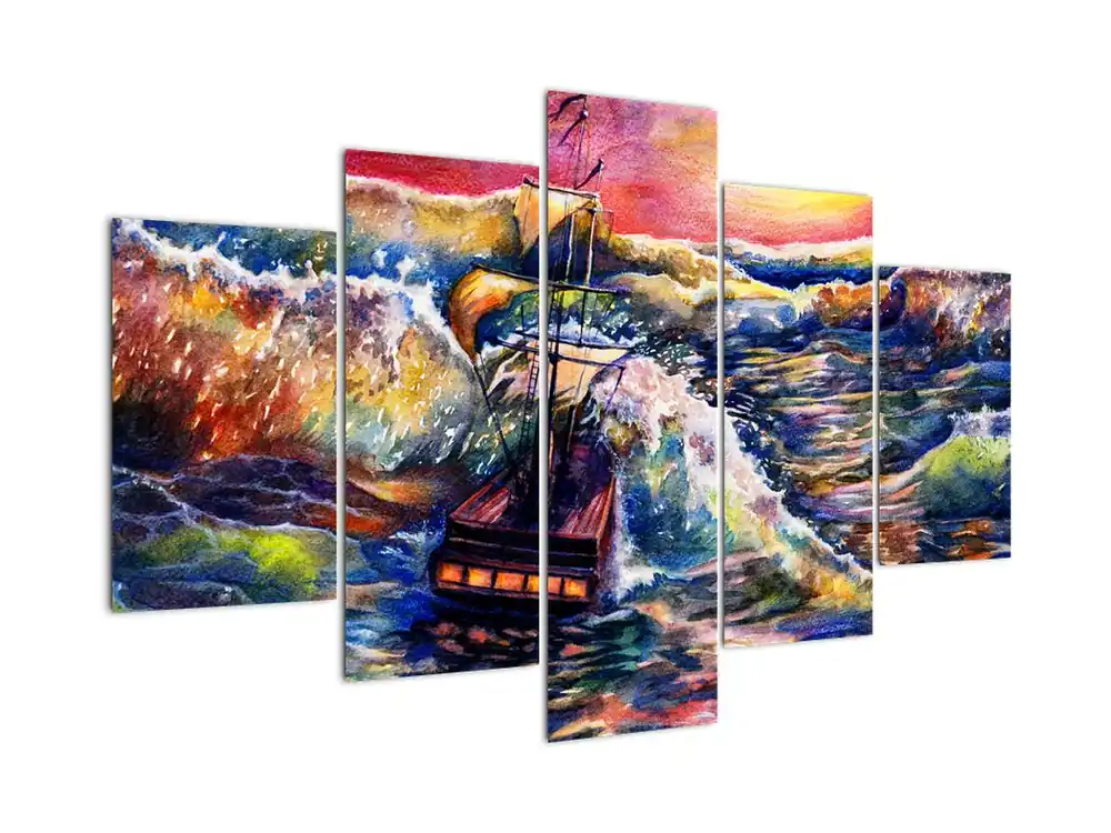 Zwrot pieniędzy Schilderij – Schip op de oceaangolven, aquarel