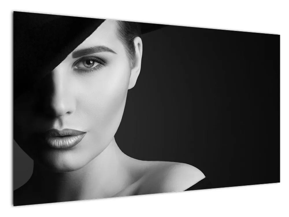 Zwrot pieniędzy Schilderij – Zwart-wit portret van een vrouw met hoed